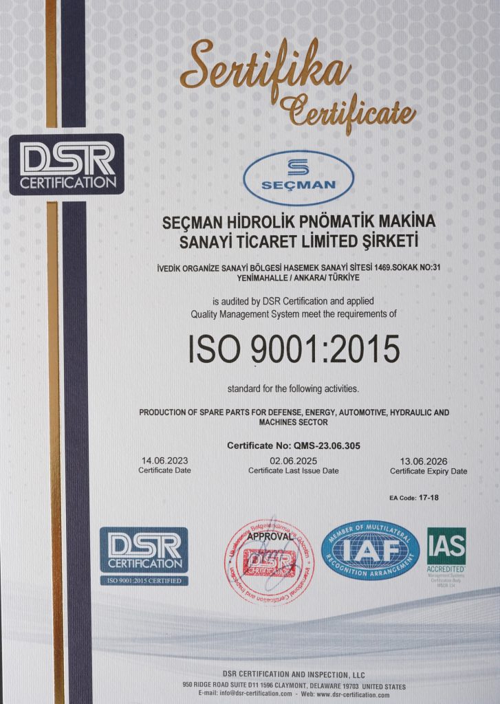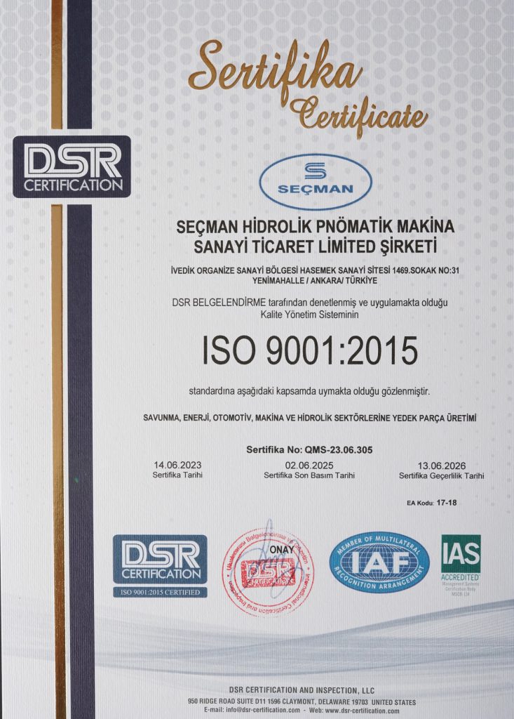 Bu amaçla SEÇMAN HİDROLİK LTD.ŞTİ. Yönetimi; tüm çalışanlarıyla hedef birliği içinde, hedeflerine ulaşmasıyla ilgili riskleri değerlendirmiş, sistemini sürekli iyileştirerek ve ürünlerinde güvenilirliği sağlayarak üretimine devam etmeyi temel politika olarak kabul eder.